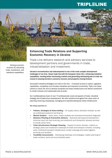 With over 25 years of experience at the intersection of trade, industry and sustainable development, and a team spanning Europe, Africa and Asia, we are well placed to bring comparative lessons for Ukraine's unique challenges and future-focused opportunities.Reconstruction is about more than rebuilding — it is about designing a resilient, inclusive and sustainable economy. That is the perspective we bring, and the partnership we offer.