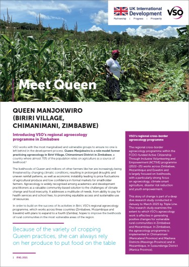 The VSO ACTIVE programme successfully supports smallholder farmers to adopt low-input, diversified agroecological practices. Our research found that participants in marginal farming areas of Zimbabwe and Mozambique are reporting: